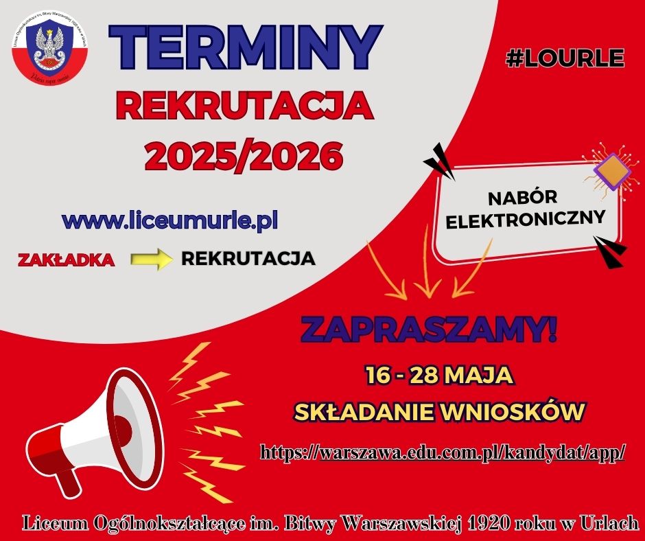 Miejsce: Liceum Ogólnokształcące w Urlach - prosimy udać się do sekretariatu (drugie piętro)